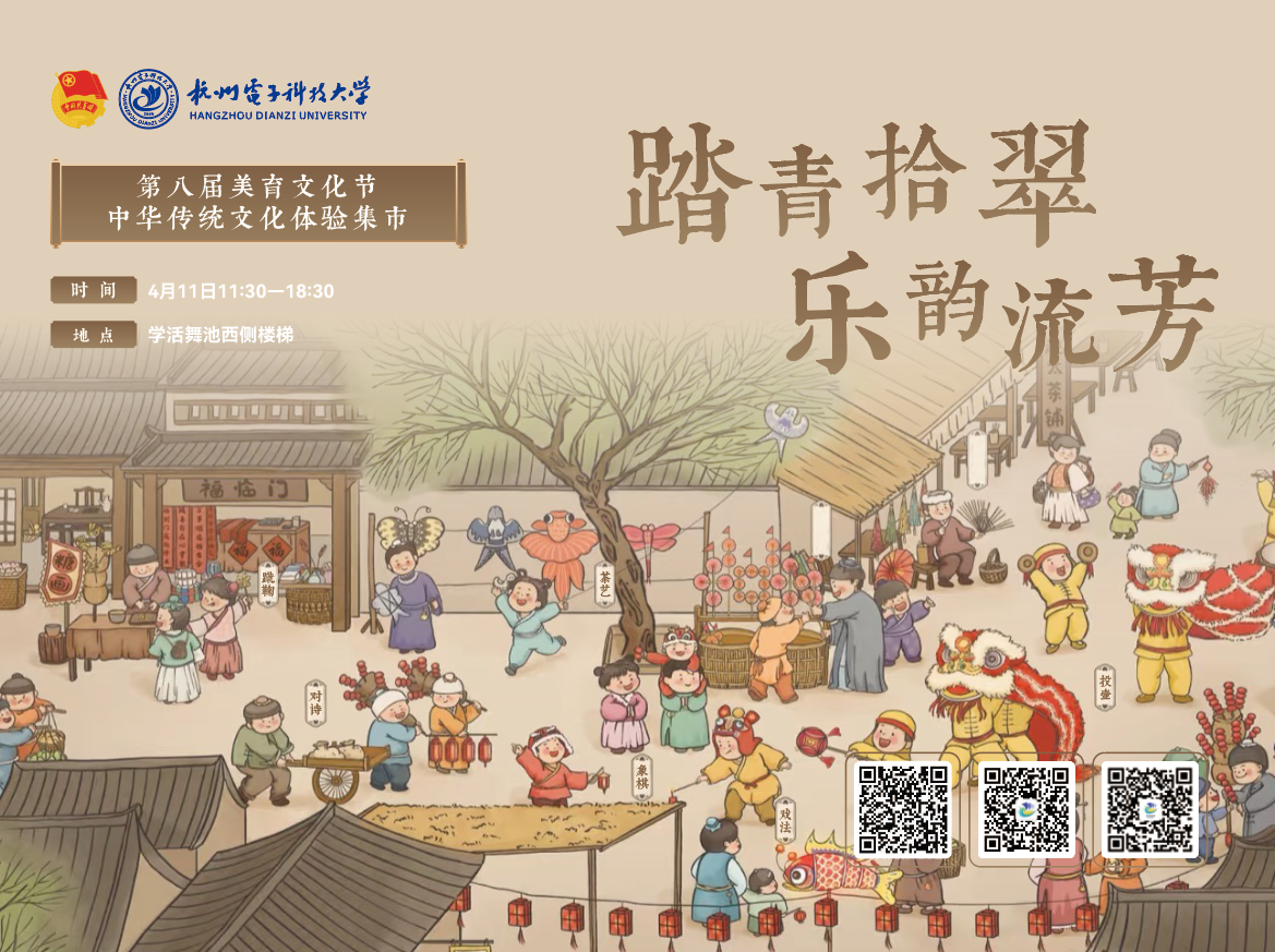 中华文明自古便以“礼乐”教化为根基,孕育出独特的文化精神和社会秩序。为传承这一千年传统,现特举办“踏青拾翠 乐韵流芳”中华传统文化互动体验集市(礼乐雅集)活动,将设置中华传统文化互动体验游戏(蹴鞠、投壶、对弈、魔术、书画、书签制作等),并穿插古乐器演奏、古代礼仪走秀、诗词吟诵等多形式表演,欢迎师生通过青春杭电二课系统报名参与。欢迎广大师生前来参与。
