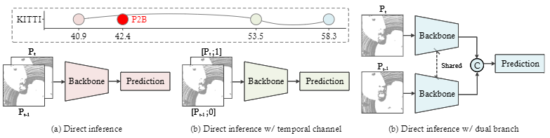 探索:该论文围绕激光雷达点云单目标跟踪任务,首先对现有主流跟踪框架进行了系统性的探索性实验,旨在厘清不同跟踪范式与结构之间的关系与优劣,如图1所示。通过对比分析传统外观匹配方法、运动建模方法及其组合模型的性能表现,作者发现:与复杂的外观匹配和运动建模相比,简洁而高效的运动结构在激光雷达点云中同样能够实现高精度、高鲁棒性的目标跟踪。这一实验结论为后续研究提供了明确方向,也凸显了在稀疏、不规则的点云环境中,运动信息在目标定位任务中的核心价值。