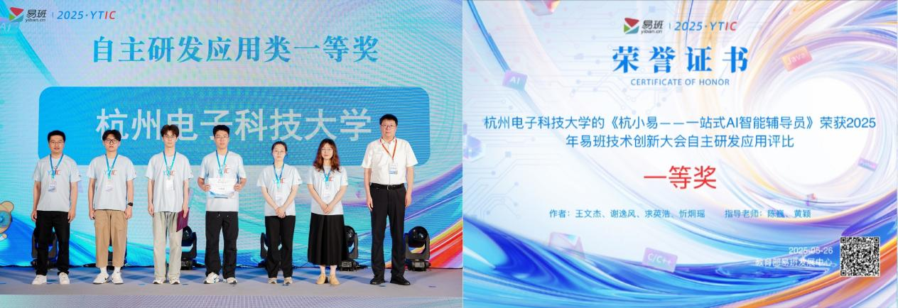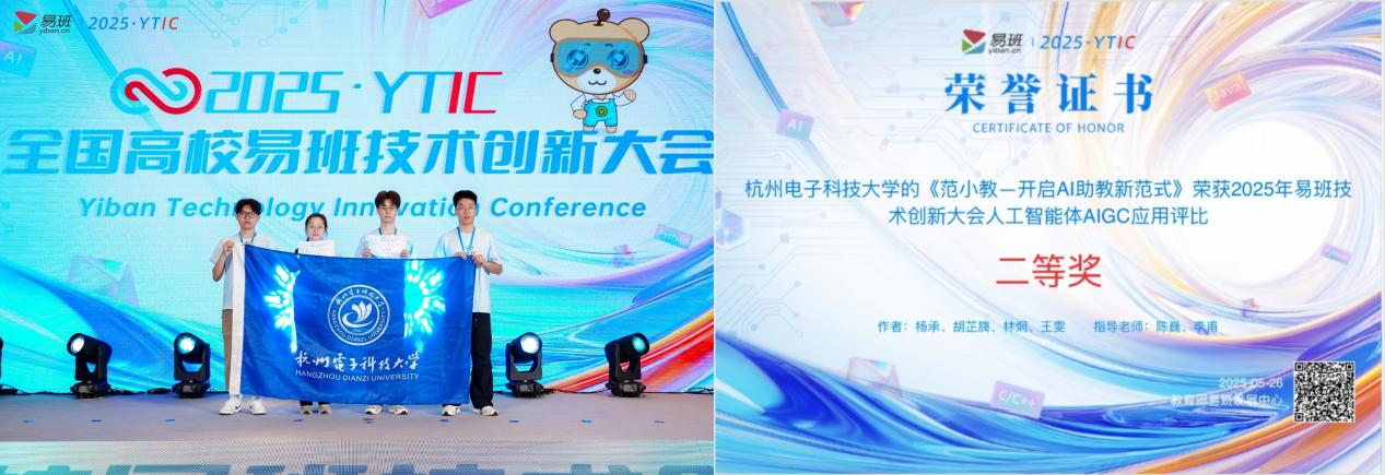 5月23日至26日,第八届全国大学生网络文化节“数智新技艺”线下交流展示活动暨2025年全国高校易班技术创新大会在珠海举办。作为教育部指导下的权威赛事,本次活动聚焦智能体AIGC应用、虚拟现实技术应用、自主研发应用及创新创意方案四大类别,共有103所高校的203件作品参与展示。我校自主研发的人工智能体项目《杭小易——一站式AI智能辅导员》荣获2025年全国高校易班技术创新大会自主研发类评比一等奖(全国唯一);《范小教——开启AI助教新范式》荣获2025年全国高校易班技术创新大会人工智能AIGC类评比二等奖。